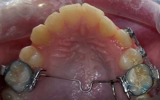 Sidder på tandbånd og ligger langs ganen, for at holde eller ændre på 6-års tænderne i overkæben. Desuden kan den holde eller øge tandbuens bredde.
