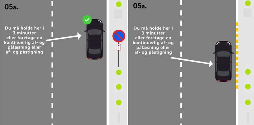Det er ikke tilladt at parkere et køretøj på strækninger med parkeringsforbud. En standsning af køretøjet på under tre minutter eller kontinuerlig af- og pålæsning er dog tilladt.