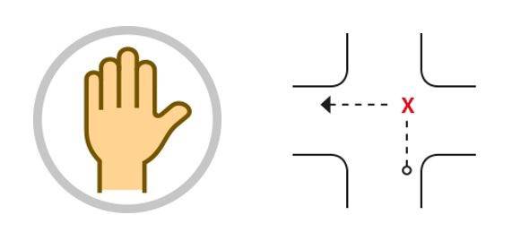 • Red: The red traffic light means stop and you must stop by signaling with you left hand above your shoulder.