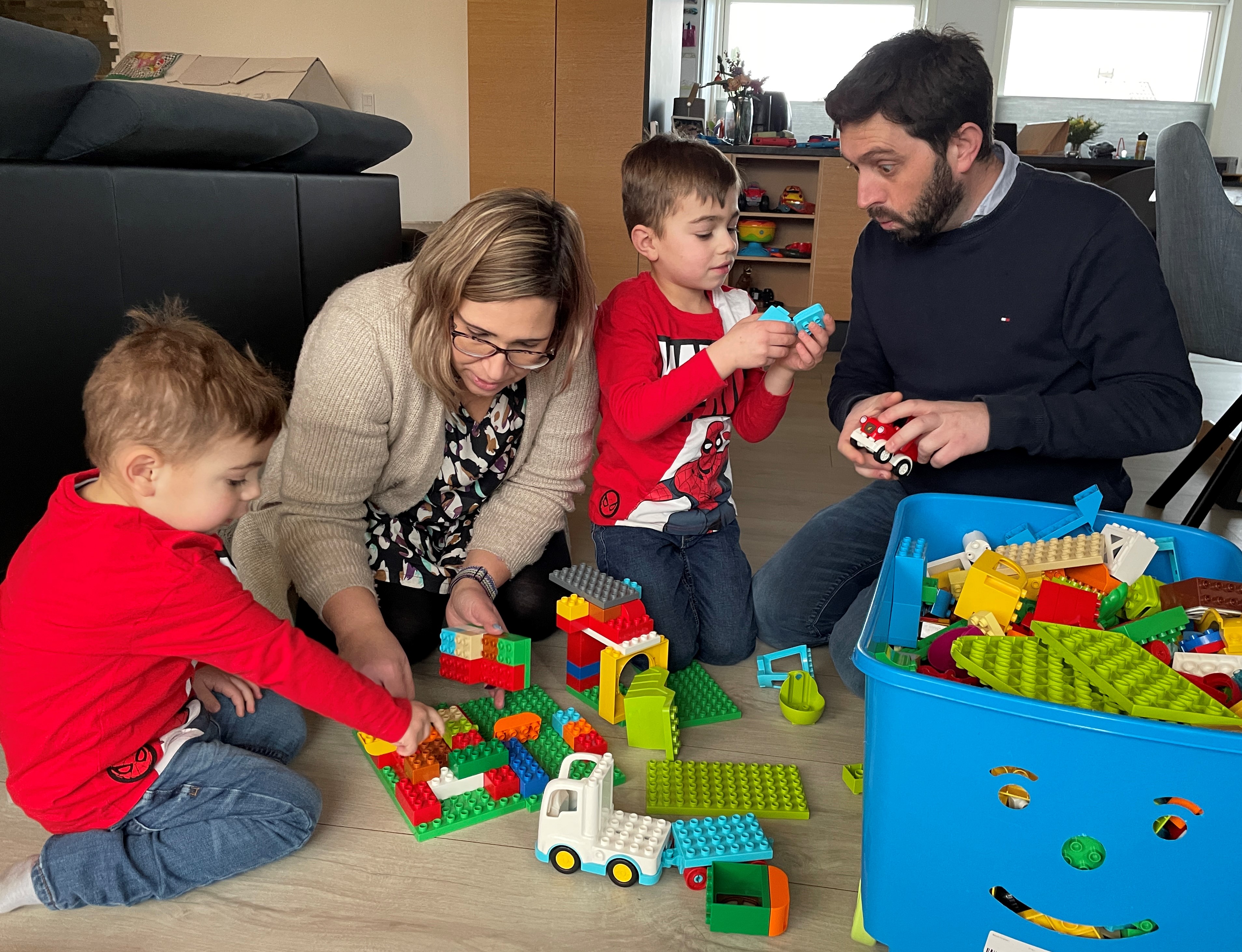 "That one," instructs two-year-old Lucas, pointing to a box of his favourite bricks. He bursts into a smile as his father, Luis, empties the bricks out onto the floor.